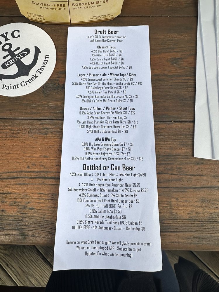 Welcome to Kruse’s Paint Creek Tavern, a charming seafood and American eatery located at 613 N Main St, Rochester, MI. This rustic tavern offers a delightful blend of flavors, perfect for seafood lovers and casual diners alike. The extensive menu features highlights such as the James Beard Clam Chowder and Dynamite Shrimp Tacos, each dish showcasing quality ingredients and innovative recipes that truly tantalize the palate.
